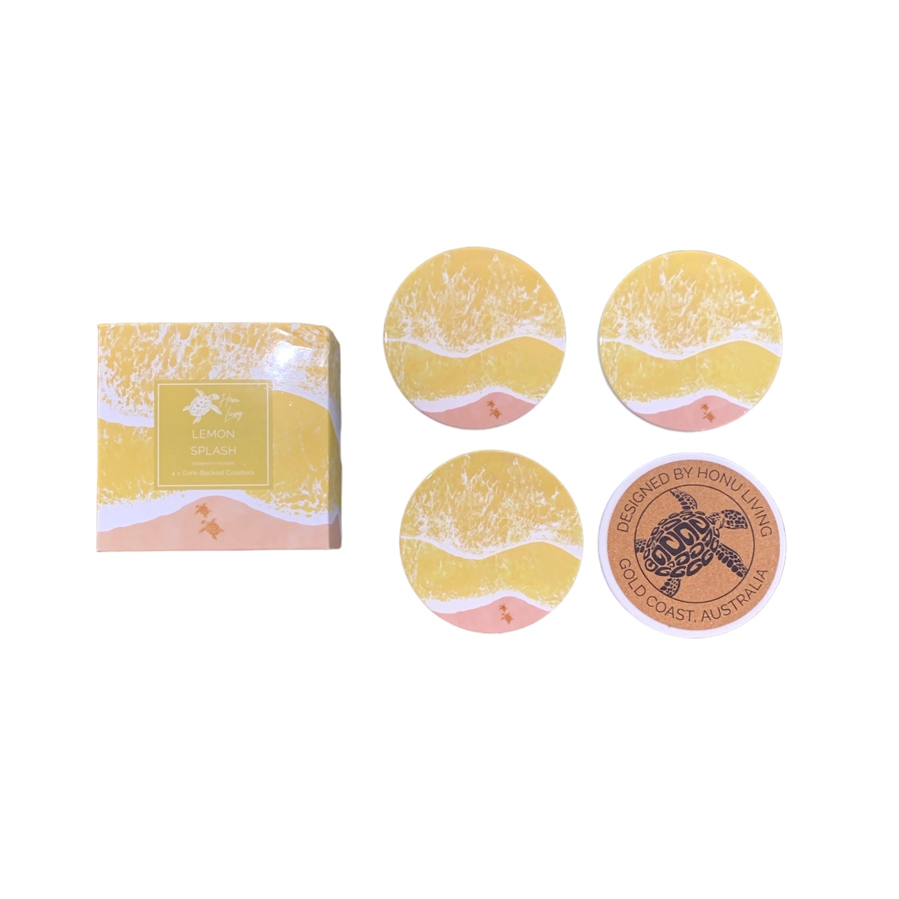 Newest edition above the waves ceramic gloss coasters! All designed by Honu, great gift alone or pair it with the same colour board. Sold as a pack of 4 box included