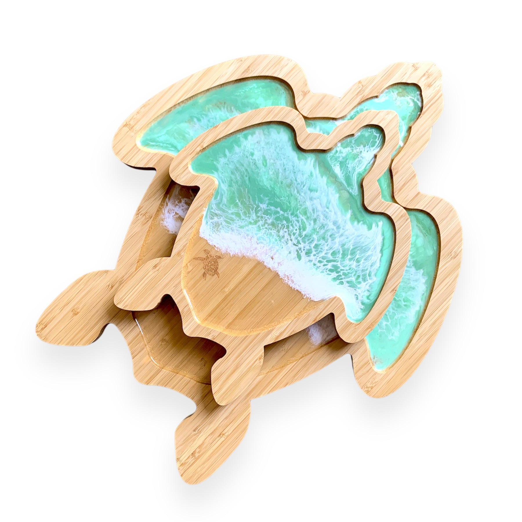 Need a special unique gift? look no futher, Try one of these Large bamboo turtles, this is our newer and improved larger size!. With the turtle shell section cut out it allows you to use this board on both sides not affecting the resin when upside down.